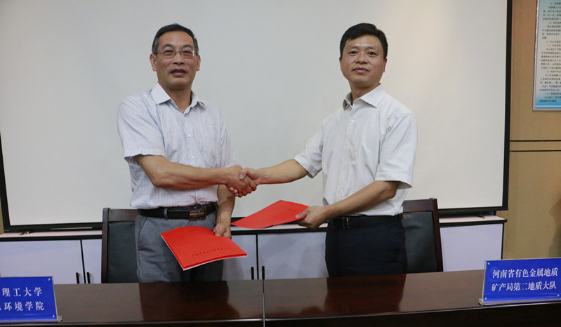 院长齐永安、河南省有色地矿局第二地质大队队长刘中杰代表双方签署“产学研战略合作框架协议”。双方进行了深层次交流研讨。