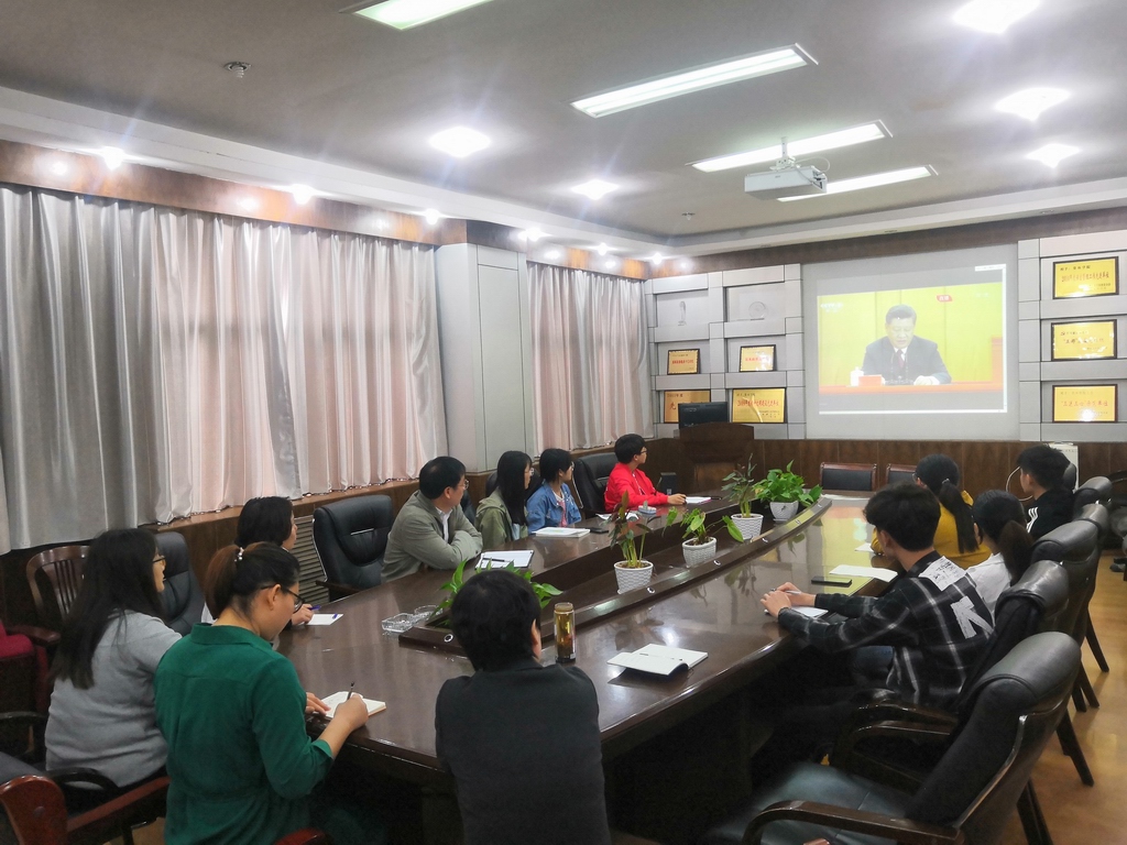 团委高度重视,广泛宣传,组织师生代表集中观看“纪念五四运动100周年大会”直播。院党委书记罗绍河、党委副书记许传阳、团委书记张良以及辅导员和学生团干部代表观看了此次直播。