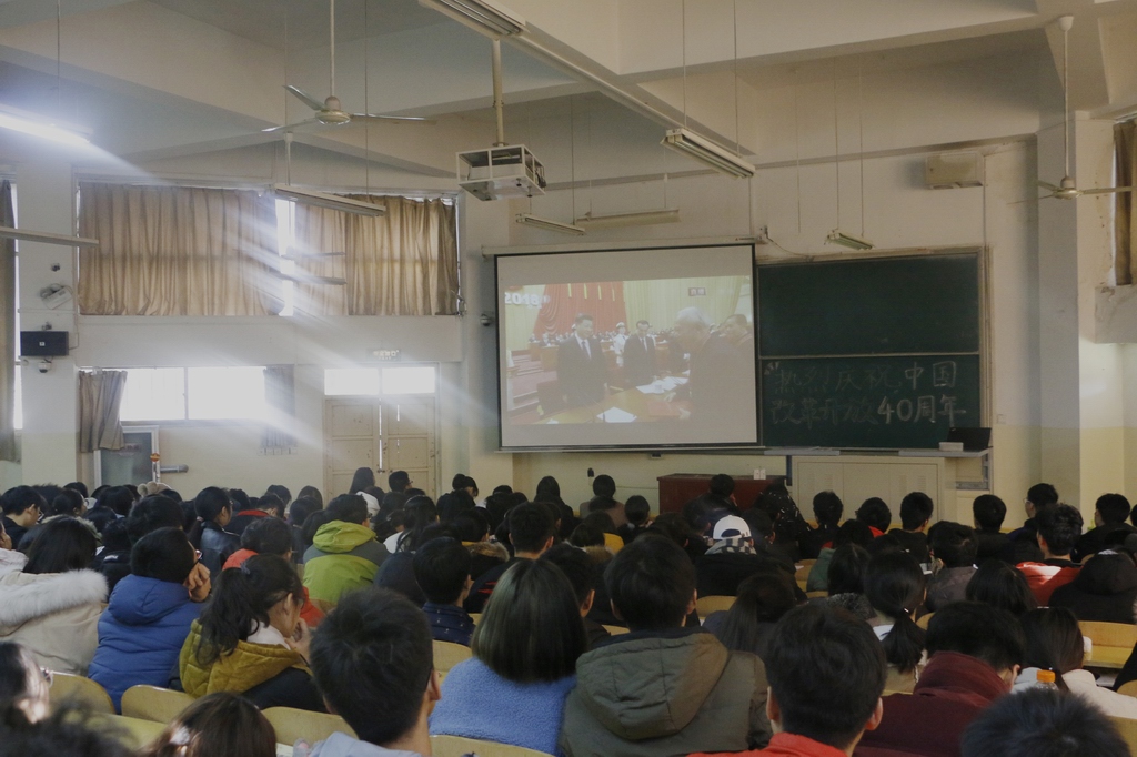 组织全院师生收看庆祝改革开放40周年大会实况直播,认真学习领会习近平总书记在大会上的重要讲话。上午九时许,在学院会议室、各系(室)、教室,好看视频