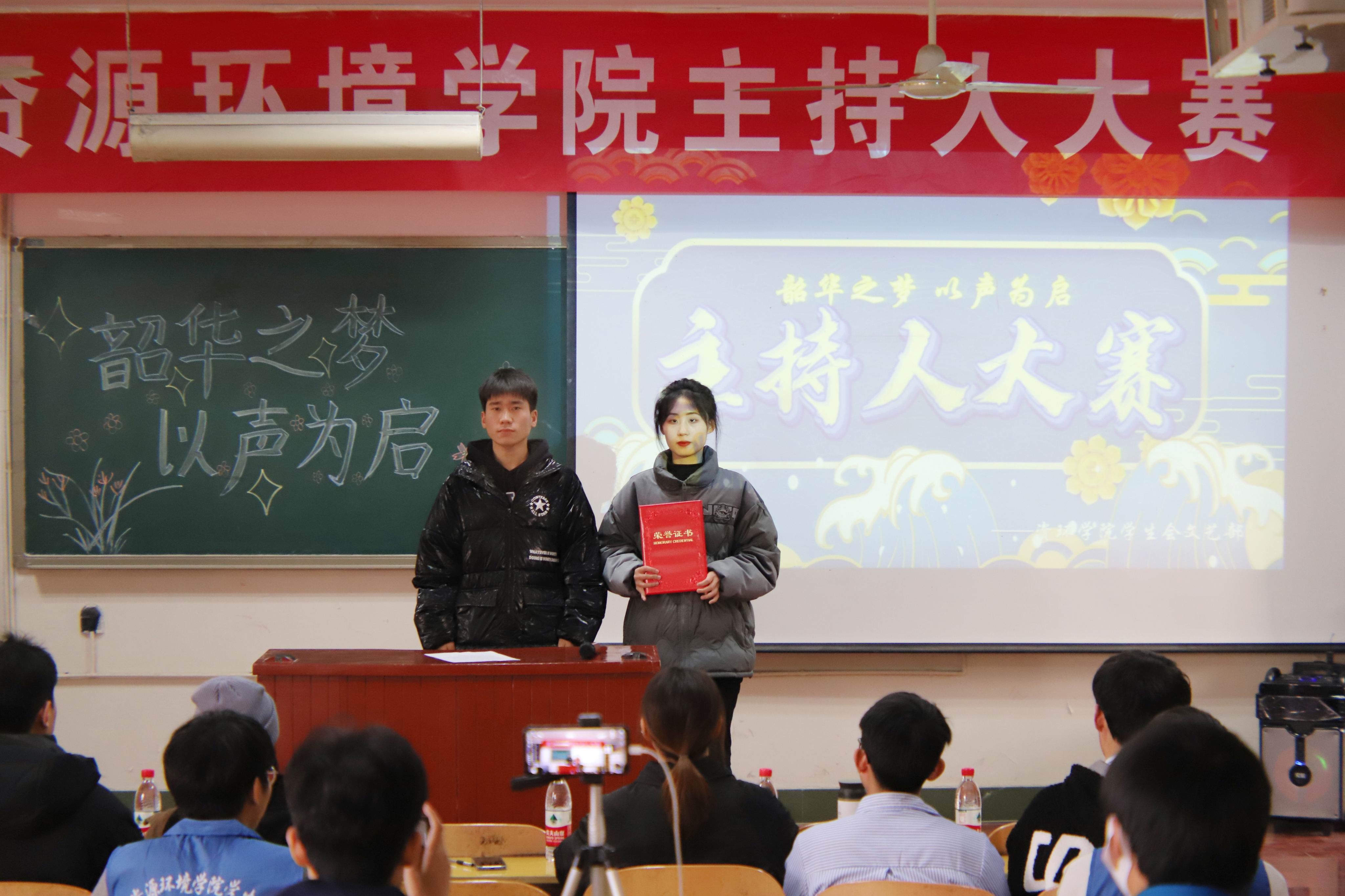 在资环楼502教室举办以“韶华之梦,以声为启”为主题的主持人大赛。