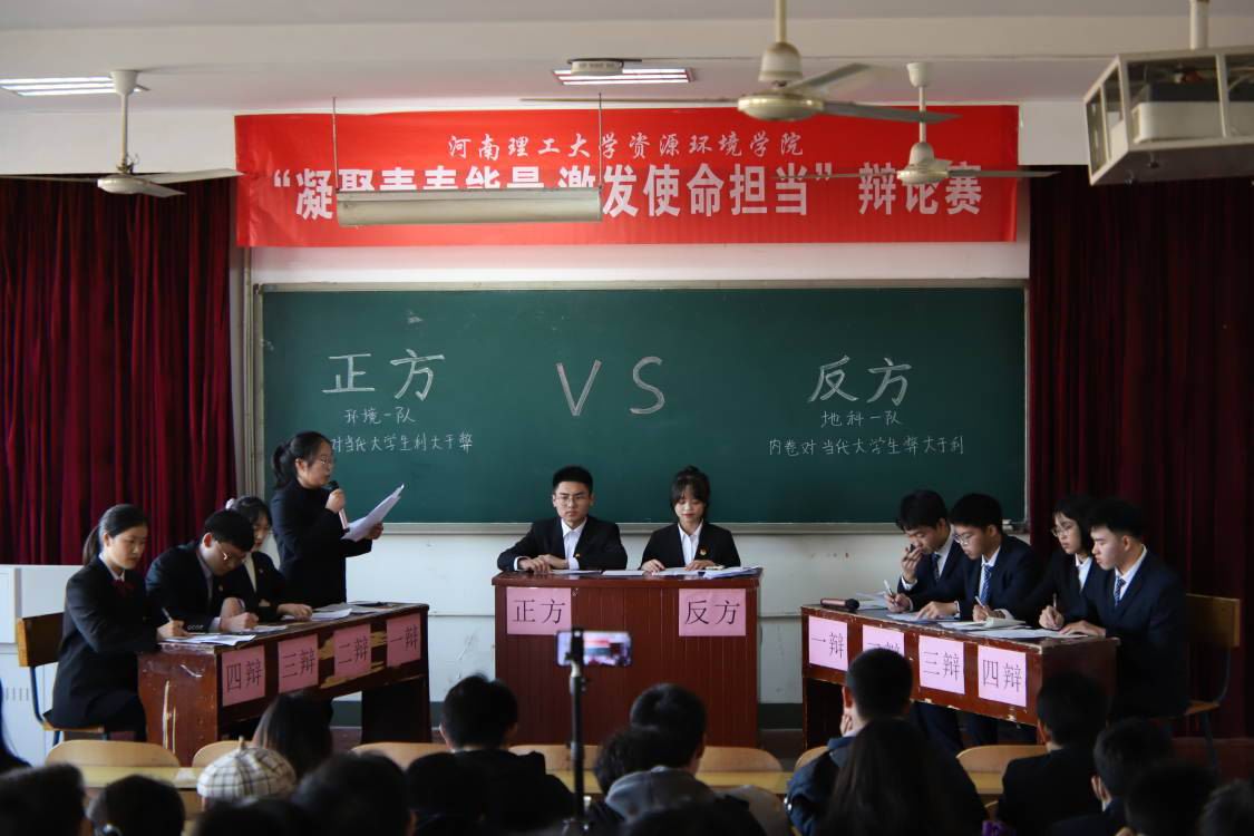 在资环楼502教室举办以“凝聚青春力量,激发使命担当”为主题的辩论赛,学院2021级本科生组队参加比赛。