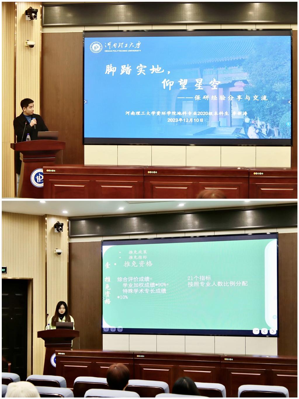 “筑梦青春,成就自我”宣讲团在资环楼第Ⅰ学术报告厅举行第一场宣讲活动,活动内容为保研学生经验分享会。会议邀请了优秀保研学子李新涛和刘钰钦来为低年级同学分享经验、答疑解惑。