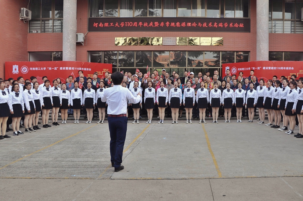 校友与母校师生共唱《河南理工大学校歌》,庆祝学校建校110周年华诞。