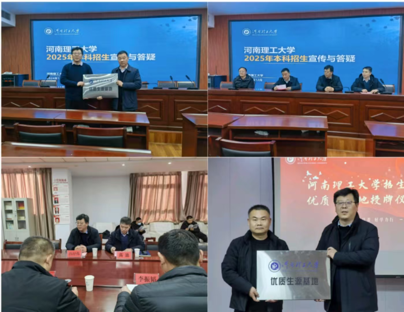 党委副书记孙付伟从学校概况、办学特色、人才培养、招生政策等方面作了详细介绍,并希望能以此为契机,进一步加强高校和中学的互动交流。该校校长吕志军表示:“河南理工大学作为高等教育的佼佼者,为我们提供了宝贵的合作机会。此次‘优质生源基地’的授牌,不仅是对我们学校教学质量和学生素质的认可,更是对我们未来合作的美好祝愿。”他鼓励学生们要珍惜机会,努力学习,为国家和社会做出更大的贡献。