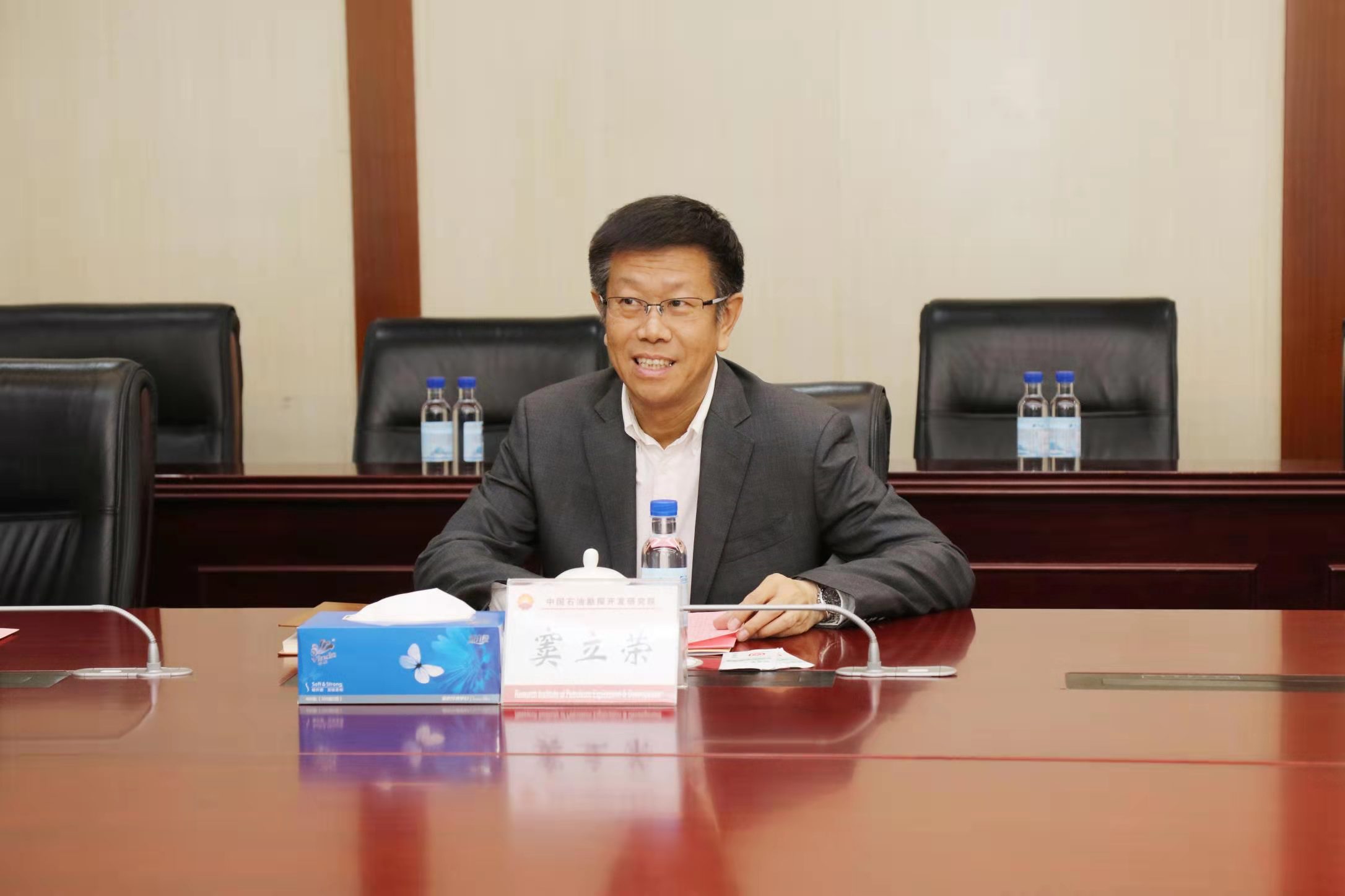 窦立荣在致辞中向赵同谦一行表示热烈欢迎,赞叹河南理工大学悠久的办学历史和在科学研究方面取得的成就,并邀请大家观看了《中国石油勘探开发研究院宣传片》。接着,窦立荣重点介绍了勘探开发研究院的业务范围和主要科研优势,他指出,勘探开发研究院主要肩负全球油气业务发展战略规划研究、油气勘探开发重大应用基础理论与技术研发、全球油气业务技术支持与生产技术服务、高层次科技人才培养等职责,综合科研实力在国内石油上游研究领域处于领先地位。窦立荣表示,此次战略合作框架协议的签订开启了双方合作的新篇章,双方将充分发挥各自优势和特色,共同致力于保障国家能源安全,推进产学研深度融合,促进相关领域的科学研究和技术发展,推动重大原始创新成果转化为现实生产力。