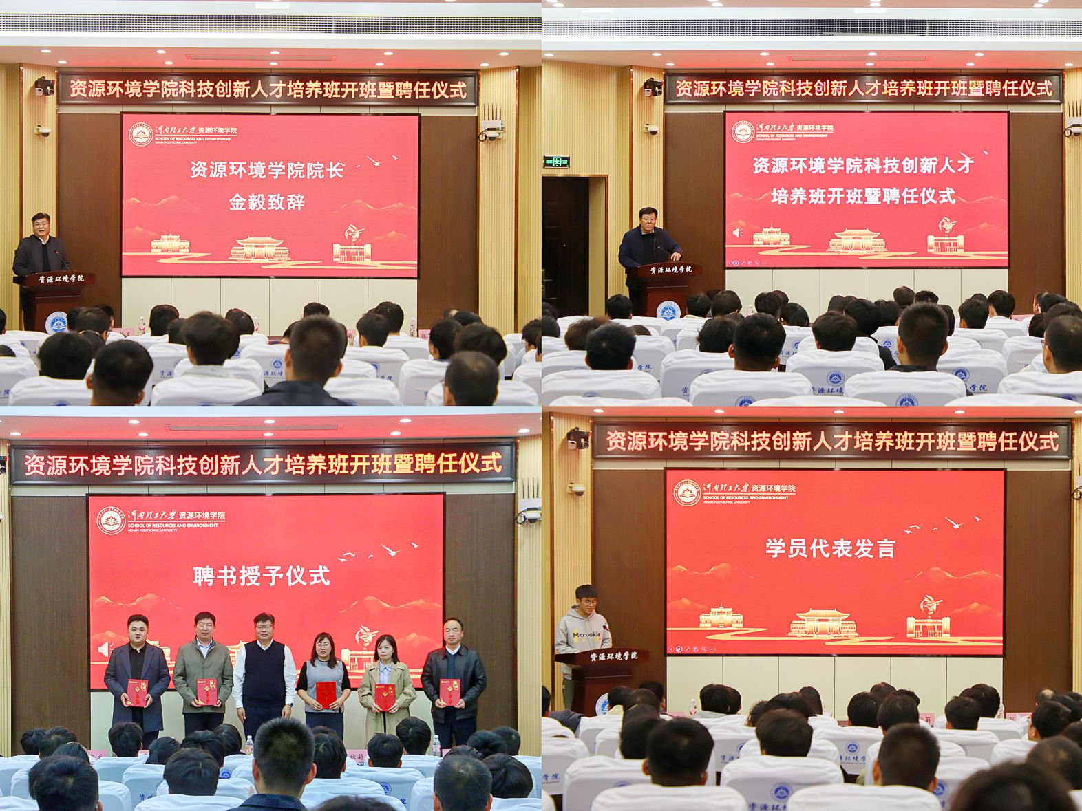 在资环楼第Ⅰ学术报告厅举办了科技创新人才培养班开班暨聘任仪式。院长金毅,校团委社团管理与创新实践部部长莫小华,教务处实践科科长张秋菊,好看视频