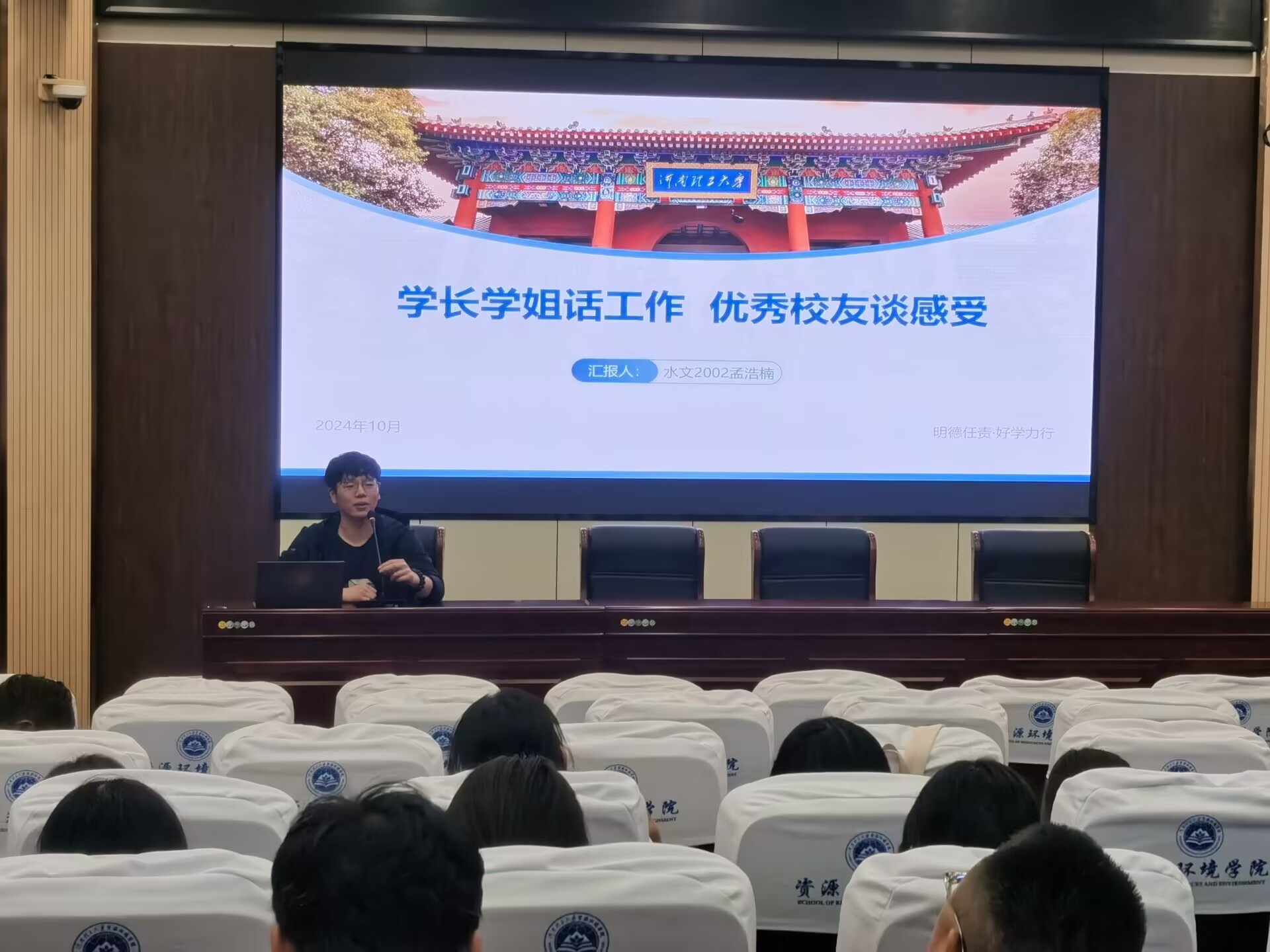 会上,孟浩楠结合自己的学习和求职经历,为同学们的专业学习提供了宝贵的建议。他分享了自己在求职过程中的心得体会,传授了面试技巧,还针对水文与水资源专业特点,为同学们提供了专业对口的职业发展方向和建议。他强调的话语中充满了对母校的感激和对学弟学妹们的关爱,让在场的同学们深受感动。在交流环节中,大家积极向孟浩楠提问,就专业学习、职业规划、面试技巧等方面进行了深入探讨。孟浩楠耐心解答,用自己的经验和智慧为同学们指点迷津,帮助他们更好地认识自己、规划未来。在场的同学们深受启发和鼓舞。大家纷纷表示,要以学长为榜样,努力学习专业知识,提高综合素养,为社会主义现代化建设贡献自己的力量。