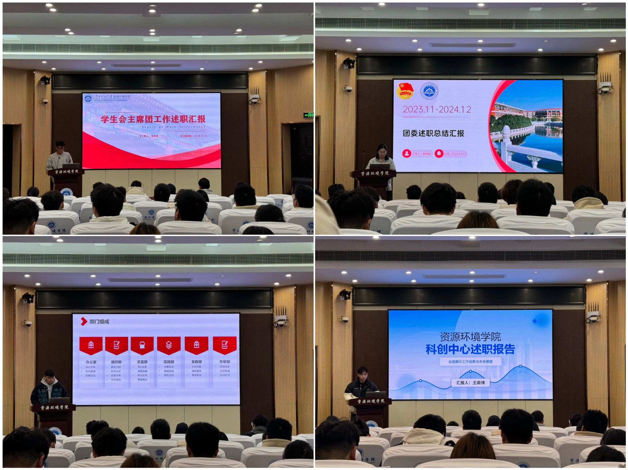在资环楼第Ⅰ学术报告厅召开学生组织述职大会,院学生会骨干以及各学生组织负责人、学生代表参加会议。