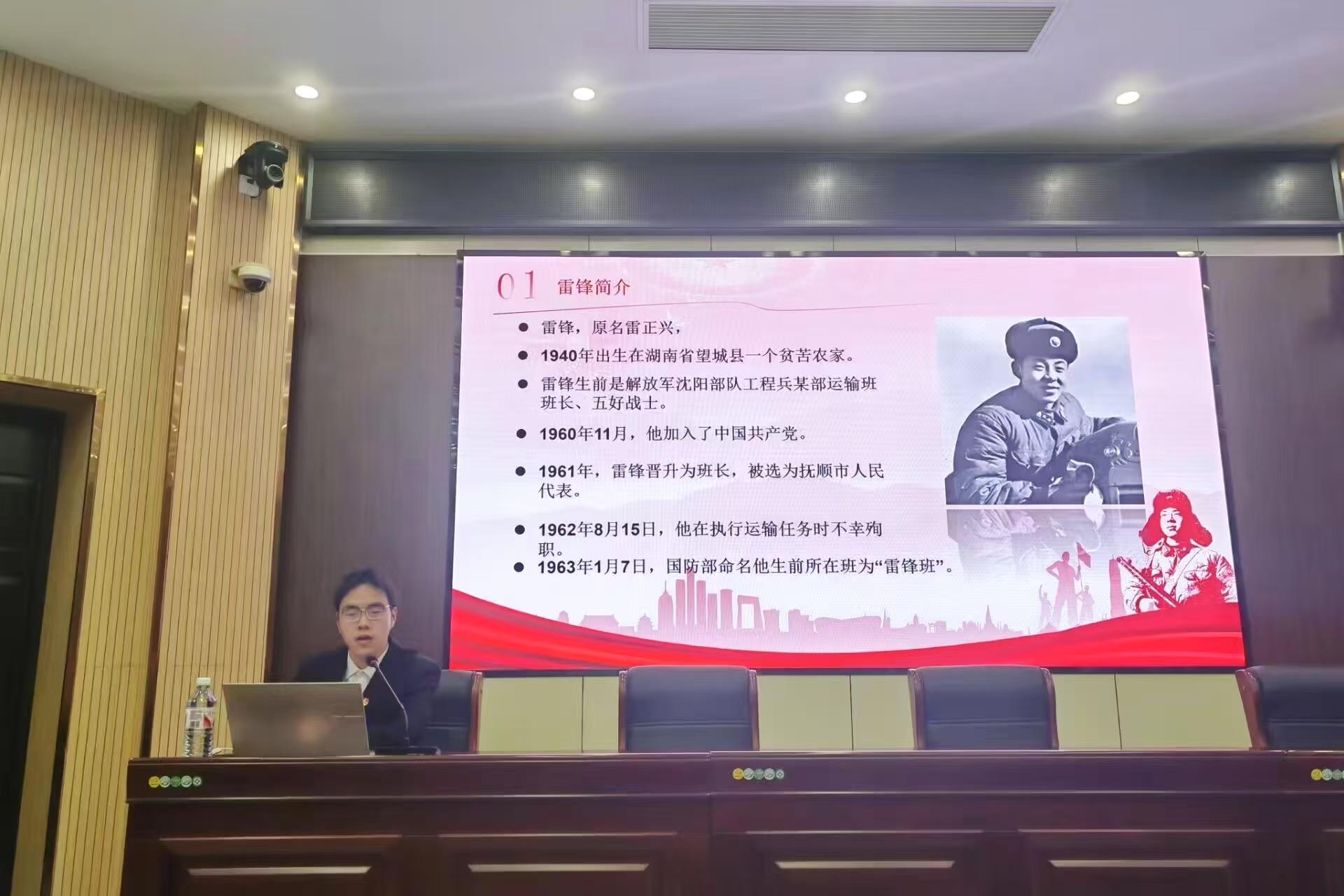 团委在资环楼第Ⅰ学术报告厅举办“弘扬雷锋精神,凝聚奋进力量”主题宣讲会,学院团委办公室副主任张远卓主讲。
