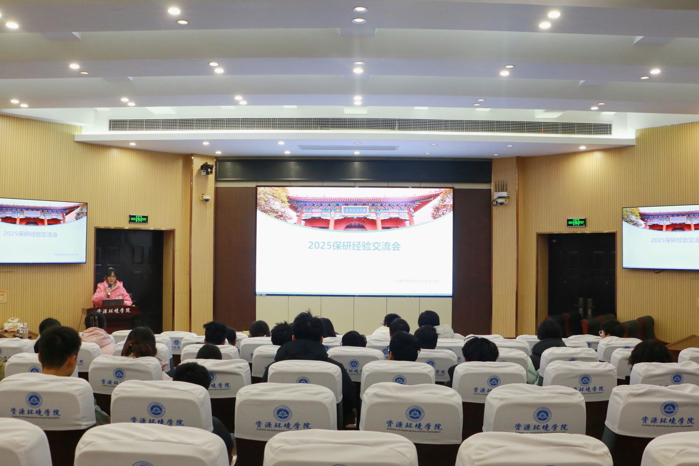 学生会在资环楼第Ⅰ学术报告厅举办了一场保研经验交流会。此次活动邀请到三位保研优秀学生代表杨子杰、高志鑫、陈峻岚。他们围绕材料准备、院校选择、保研条件等关键内容,与同学们展开了深入且富有成效的经验分享。