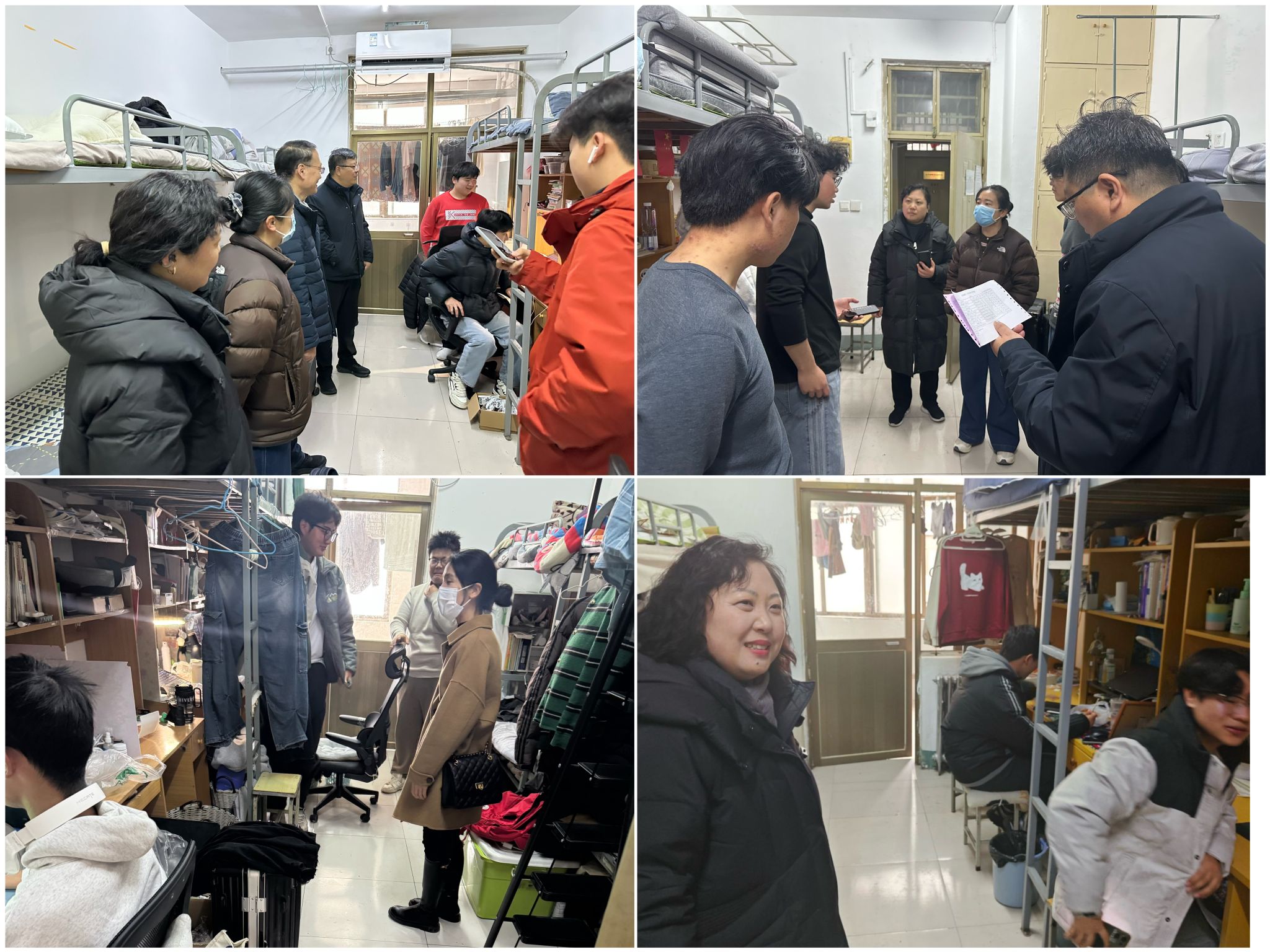 领导班子带领学工队伍分组深入本科生与研究生宿舍,开展新学期宿舍走访活动。