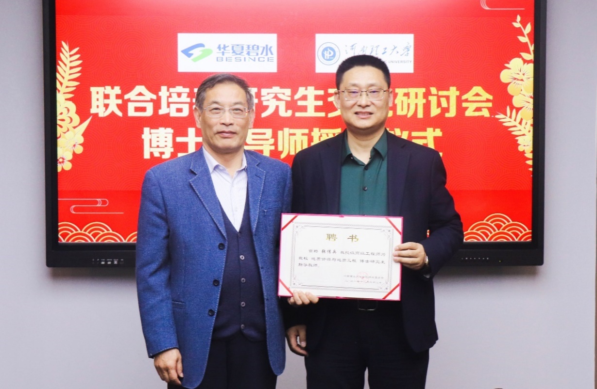 4月12日,学院院长齐永安、校发展规划与学科建设处处长李东艳一行赴华夏碧水环保科技股份有限公司开展联合培养研究生交流研讨并聘任华夏碧水环保科技股份有限公司董事长张传兵为好看视频 博士生导师。