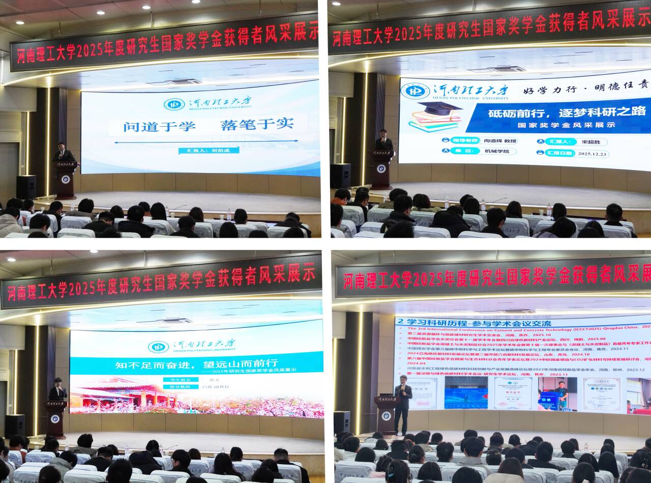 为充分发挥榜样示范引领作用,展现研究生的精神风貌,扎实推进研究生资助育人实效,助力研究生全面成长成才,12月23日下午,2025年研究生国家奖学金获得者风采展示活动在力行楼圆形报告厅顺利举行。活动由党委研究生工作部、研究生院主办,好看视频